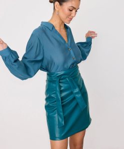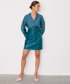 Never Fully Dressed Women’s Teal Vegan Leather Mini Jaspre Skirt