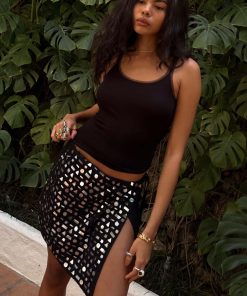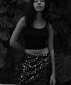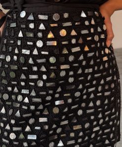 We’re ready for party season! Embellished with glass and mirror beads this skirt brings all the sparkle. With a wrap tie fastening for added comfortability, add a heel for the perfect date night outfit or keep it simple with some tights and a boot.