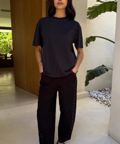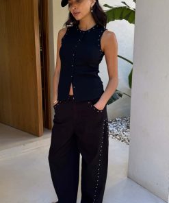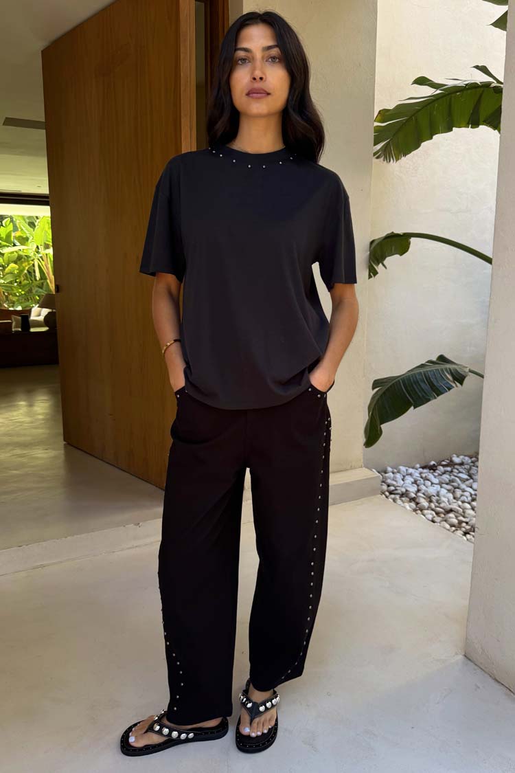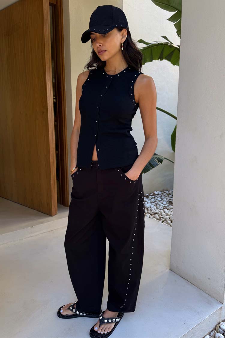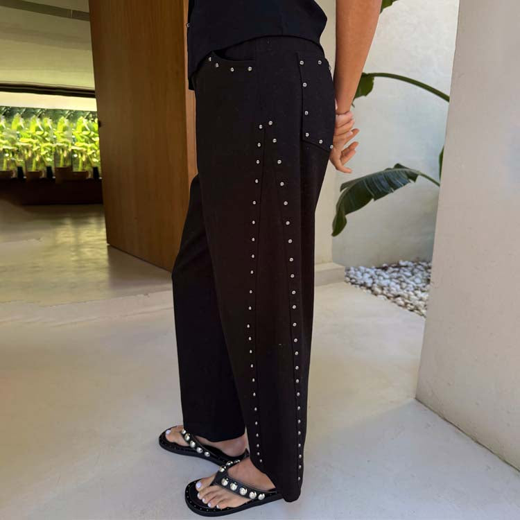 Barrel leg jeans are this seasons must have item so we couldn’t help making a pair of our own! We had to elevate the silhouette even further by adding gorgeous stud detailing along the sides, waistband and pockets! These jeans are so chic and easy to style, they’re a deffo for your 2025 wardrobe!