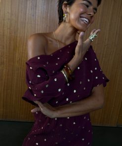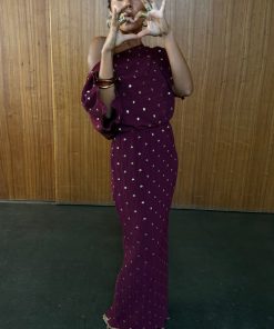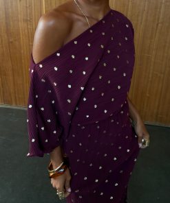 Our best selling Tilly dress in a gorgeous new colourway! The slightly relaxed silhouette allows you to style off-the-shoulder while the stretchy plisse fabric and elasticated waistband makes it a so wearable and perfect for an evening event! The lettuce hem and subtle gold flecks add a touch of elegance, catching the light beautifully in the sun. Complete the look with heels and a clutch for a chic finish.