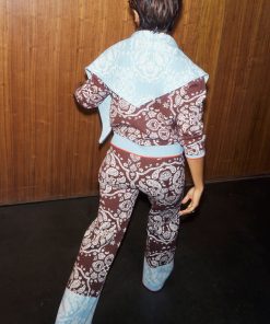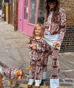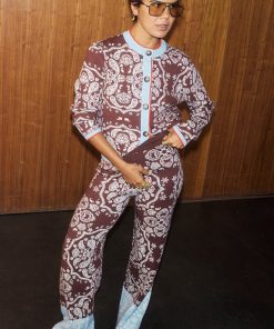 Our iconic bandana print, in a soft stretch weighty knit. With an elasticated waistband and a contrast blue hem for a luxe finish, and a pop of NFD colour! The brown and blue contrast feels so chic and paired with the matching cardi, it’s definitely an effortless everyday co-ord!