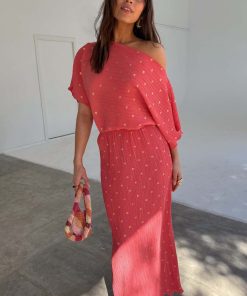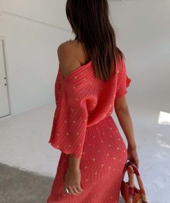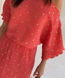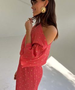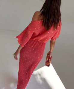An off the shoulder style that is suited to all bust sizes and the stretchy plisse that works perfectly for bump. The lettuce hem and gold flecks are so underrated and are glisten gorgeously in the sunshine.