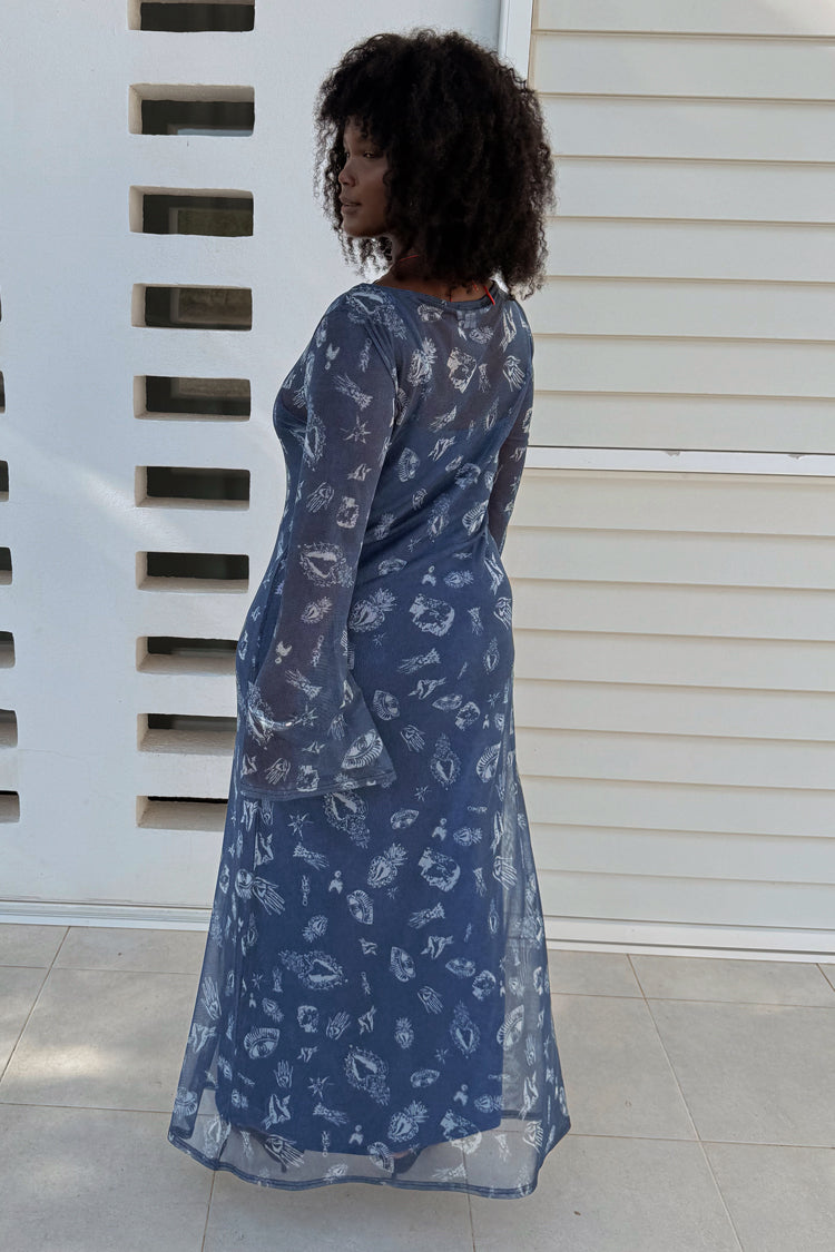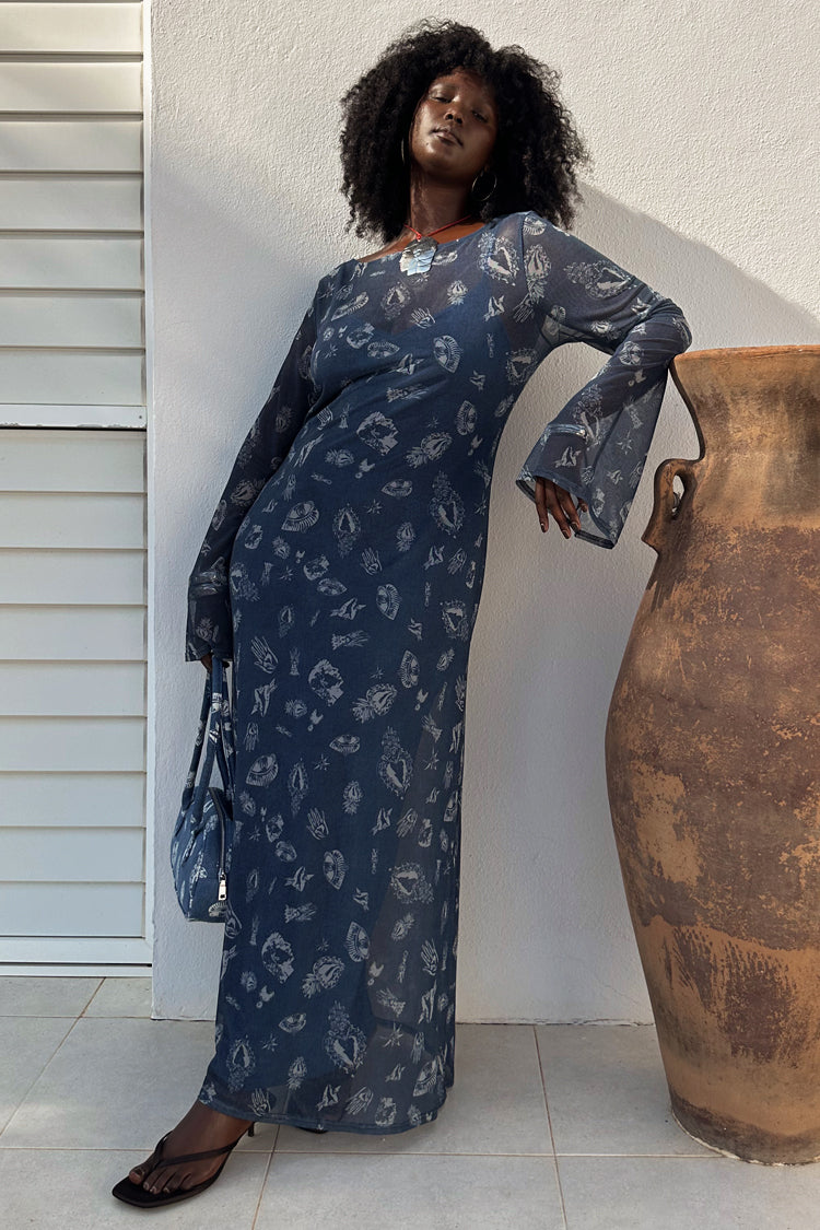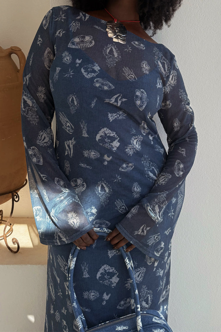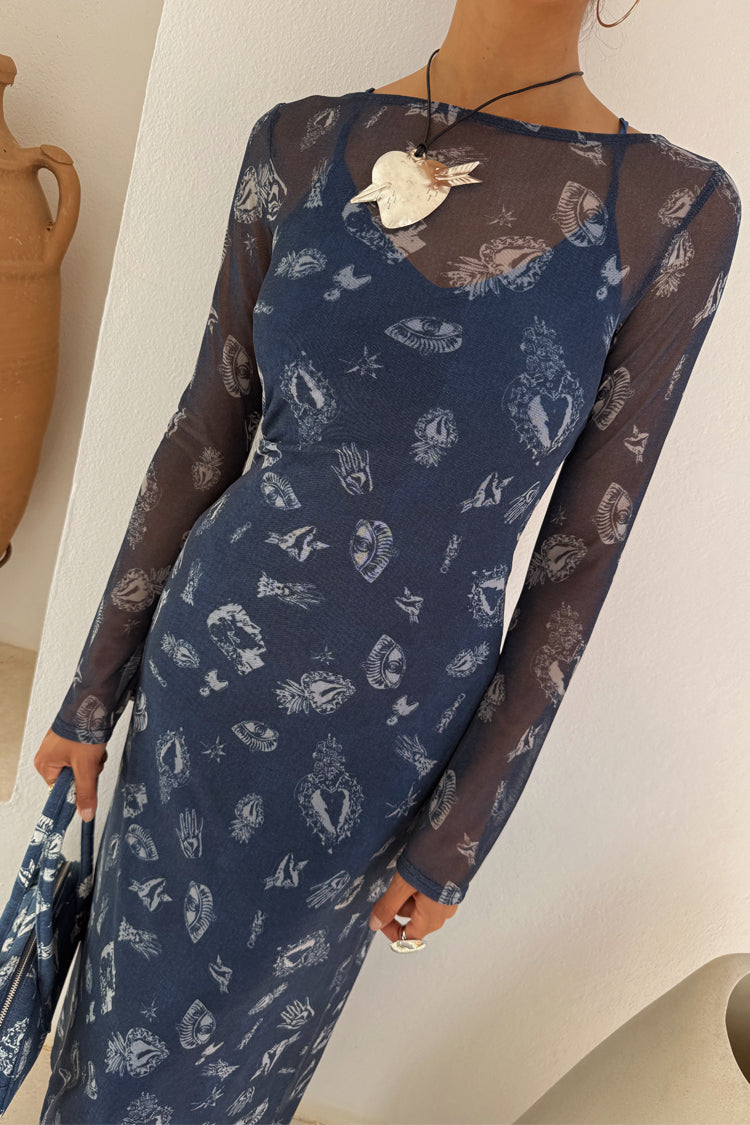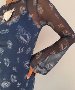 In our bestselling mesh fabric, designed and created in the UK, with lots of stretch and movability. Our new deloris print, featuring some of our iconic hand, heart and eye NFD motifs based on hand crafted tin jewellery created by our very own founder, Lucy! The silky soft base makes it the perfect dress to be worn throughout the seasons, layer over underwear for a slightly sexier approach or add some coverage with the slip and pair with some kitten heels for an easy office to evening look. The fit is so flattering, it really skims the curves and defines the waist.