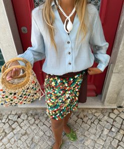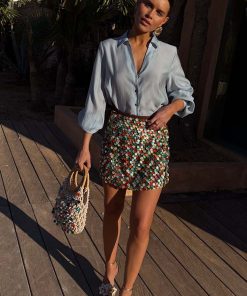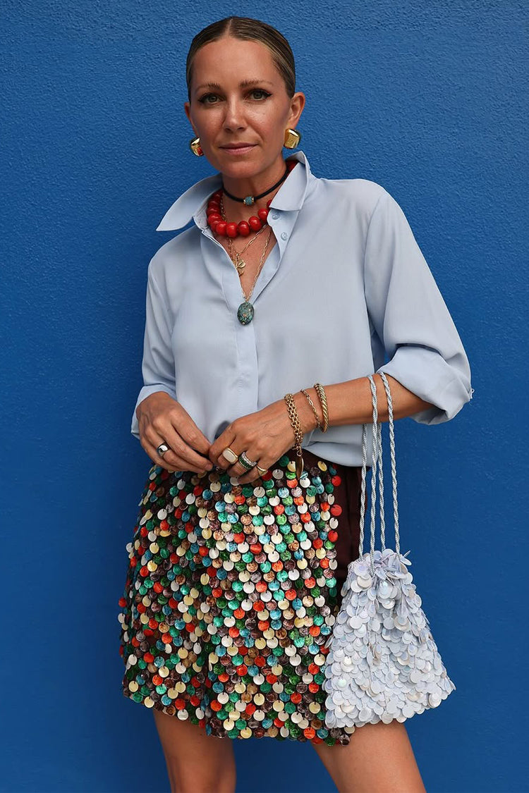 You guys loved our cream shell skirt so much we had to bring you new version for SS25! Inspired by the teams trip to the Greek islands, we’ve added multicoloured pearlescent sea shell beads, that shimmer in the sun and add that pop of NFD flare. This mini skirt is a priority on your summer party outfit checklist! Keep it simple with a plain tee or elevate with a miley and a heel.