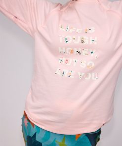 In a baby pink with printed wording decorated with our iconic NFD motifs, embellished with our logo and featuring concealed zips along the arms and neckline for accessibility when receiving treatments.