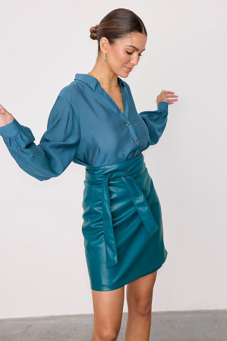 A chic mini skirt perfect for strutting around the city in the sun or pairing with kitten heels for a sleek date night look. Our supple vegan leather ensures flowy movement as you walk, and with the additional feature of a wrap waist, it’ll always be the an amazing fit. It ties in multiple ways depending on what style/amount of coverage you like.